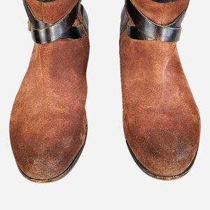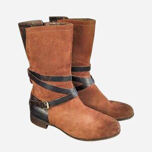 UGG Deanna Boots Chocolate Brown Suede Leather Shearling Lined Mid-Calf l Size 8