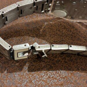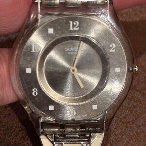 Swatch Watch Flat Silver Face with White Silver Band & Clasp