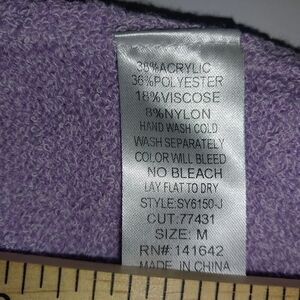 38%Acrylc,36%Polyester, 18%Viscose and 8%Nylon .Stylish lavender cardigan with button-up design. Soft fabric and short sleeves. Perfect for layering.