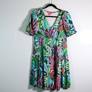 Lilly Pulitzer Chiara Tiered Cotton Pullover Tiered Sunshine Jungle Dress Medium