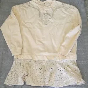 Adorable Free People Prairie Sweatshirt. Medium. Oversized fit. Falls a little above the knee- very cute with leggings and boots. Washed and worn condition. Nice condition, but it does have a few tiny gray spots on the left side, as pictured. Price reflects that.