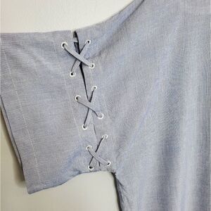 NEW MADEWELL blue stripe dress lace up short sleeve shirt XL