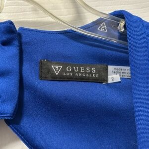 Chic guess design. Ptp 17 1/2 x 35 length size 2 new tags poly and spandex. The dress is lined Vibrant royal blue color. Perfect for any event.