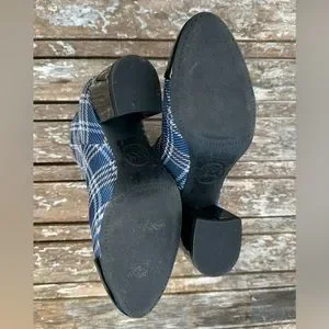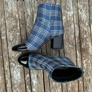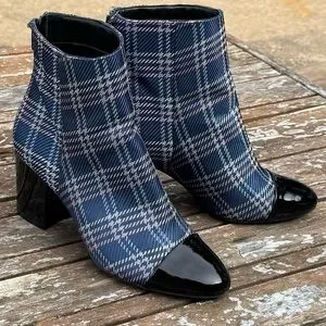 1901 Plaid Heeled Bootie w/ Black Patent Leather: Blue/Pink/Silver, size 6.5