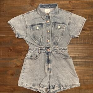 Le Lis Collared Short Sleeve Denim Romper size Small