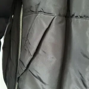 Stylish down filled (70% down filling) puffer with four zip pockets - 2 inside and 2 outside. High collar and detachable fur hood for warmth. Perfect for winter.