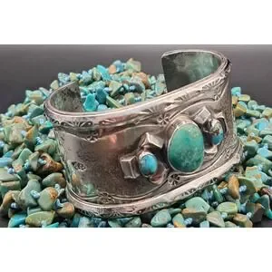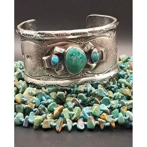 Large 5"1/2" Vintage Turquoise Cuff Bracelet Stamped AP~ (Agnes Platero)