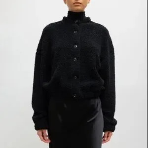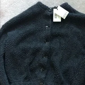 LESET Charcoal Mica Collarless Blouson Button-Up Jacket Cardigan. This is chic and cozy, perfect for the season. New with tags, never been worn. Please note that the model is wearing a black color, but the one I have on sale is a charcoal color, which is a lighter, more greyish hue.