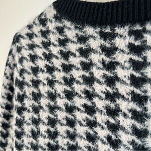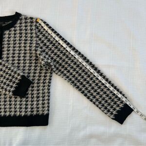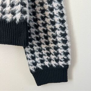 Tahari Women's Black White Soft Fuzzy Eyelash Houndstooth Cardigan Sweater Large