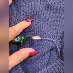 Lauren Ralph Lauren Women’s Blue Hoodie Waffle Knit XL Cotton Pullover
