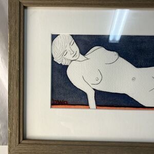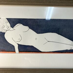 2014 Original Modern Minimalistic Nude Line Art Pencil Watercolor Artist Signed
