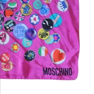 MOSCHINO | Vintage 100% Silk Pop Art Pin Badge Scarf 25" Made in Italy