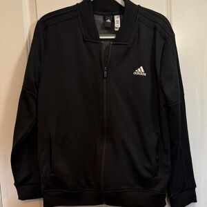 Classic black track jacket featuring Adidas logo. Ideal for everyday style.
