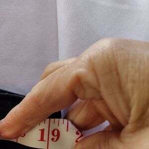 black skirt with side, invisible, zipper and hook and eye closure. waist 19" length 19". cotton spandex blend