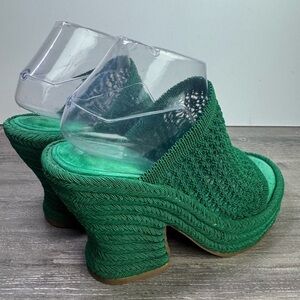 Toni Bianco Matrix Wedge Jade Green Woven Sandals size 7/7.5