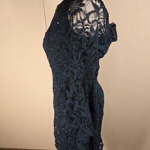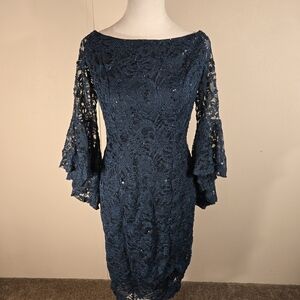 VENUS Off Shoulder Dress Bell Sleeve Blue Lace / Slip Sz 8