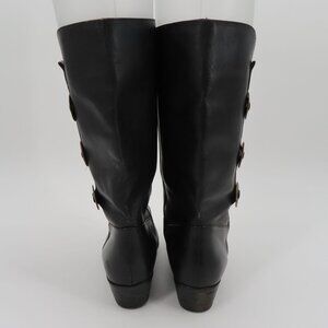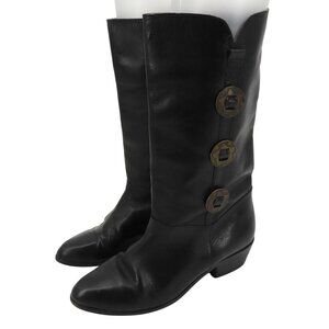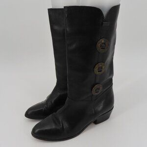Womens 9 M Solid Black Leather 5 Point Star Concho Cowboy Western Boots Brazil
