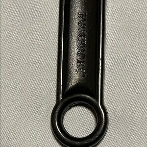 14" Farberware Spatula Flipper is a versatile kitchen tool designed for cooking tasks. Made of durable black nylon material, this spatula is flexible for easy flipping and has holes for draining of excess oil. The handle is also made of nylon for a comfortable grip while cooking. Ideal for any kitchen, this spatula from the trusted Farberware brand is a must-have for any home chef. Made in the United States, this spatula is a solid black color, perfect for any kitchen decor. Pre-Owned Good Condition. Has few little nicks as it is used condition. See photos.