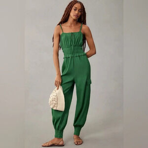 COPY - NWT Anthropologie Rider Green Smocked Jumpsuit Small