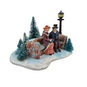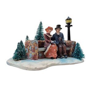 Bring holiday charm to your home with this delightful Christmas Village scene. Featuring a couple on a bench with a lamp post, this boxed resin piece adds a cozy touch to any festive display.