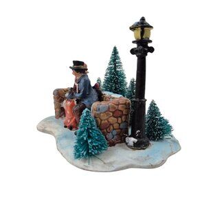 Holiday Time Christmas Village Couple On Bench With Lamp Post Scene Boxed Resin