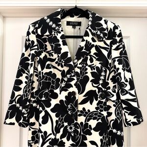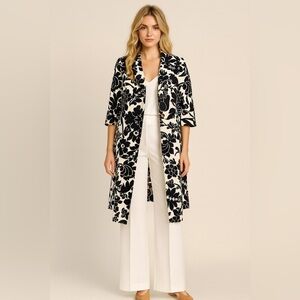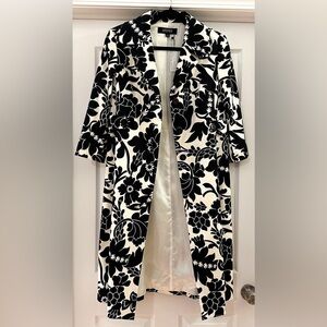Kasper Floral Leaf Print Midi Cocktail Trench Coat Black White sz 10
