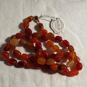 Elevate your look with the stunning amber beaded necklace by Jones & Lilly. The rich amber hues bring warmth and elegance to any ensemble.