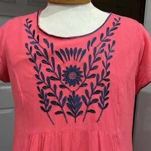 Alya dress in coral with teal floral embroidery like new