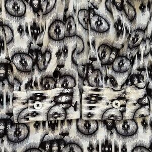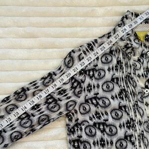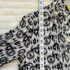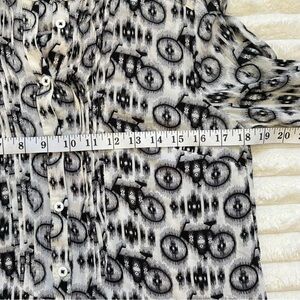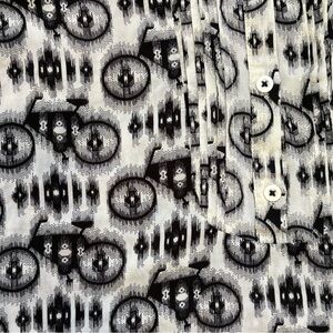 Long sleeve button down blouse. Black and white abstract bike design