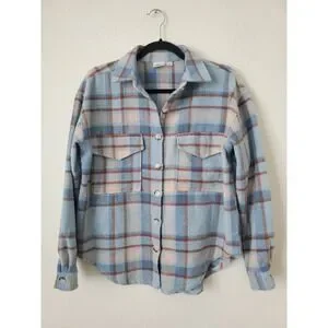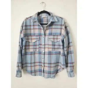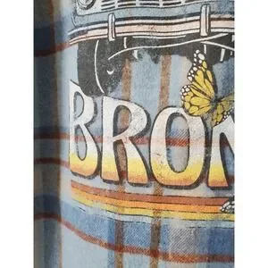Ford Bronco Plaid Shacket Flannel Shirt Jacket Blue Women's XS Retro Bohemian