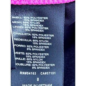 The DKNY one-piece swimsuit in size 8 is a stylish and practical choice for a hot pink beach vacation. This pink swimsuit features a tank top style with wide straps and a cheeky bottom style, making it perfect for lounging by the pool or hitting the beach. Made from a blend of polyester, nylon, and spandex, this swimsuit offers a comfortable fit with features like a built-in bra, tummy control, and UV protection. Perfect for a beachy theme, this swimsuit is lined and padded for a flattering silhouette.