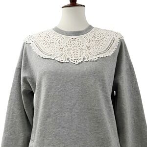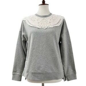 Boden Grey Sweatshirt with White Lace Collar Women's Size XS