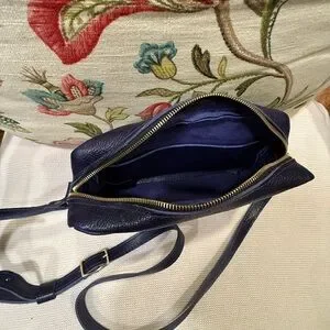 Stylish navy blue crossbody bag perfect for everyday use. Features a sleek design with a comfortable strap.