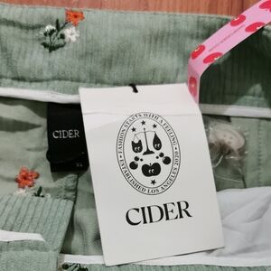 Cider Sage Green Pants with Floral Embroidery Fairy Cottagecore Comfortable