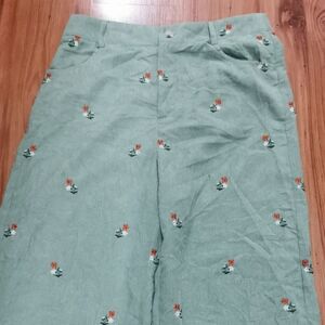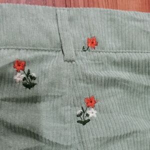 Chic green pants featuring delicate floral embroidery. Ideal for everyday style.