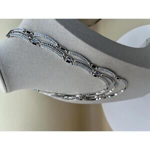 Napier Triple Strand Silver Tone Necklace with Blue and Black Rhinestones E4