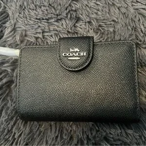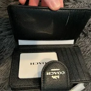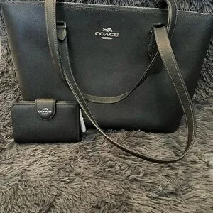 Sleek black tote with matching wallet. Signature Coach design. Perfect for everyday use.