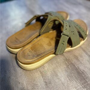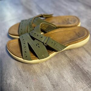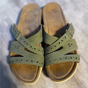 Earth Origins Womens Sandals Size 9.5 Green Slides Casual Leather Comfy