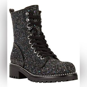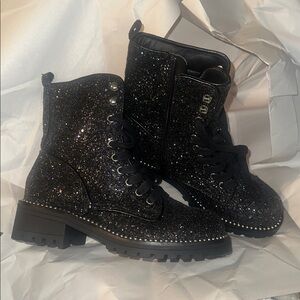 NEW Glittered Combat Boots Women's (w/ some blue,purple, green sparkle)
