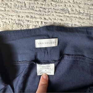 Van Heusen Navy Stretch Pants Women’s Size M Scalloped Hem, Pull-On Style