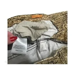 Stylish Tory Burch skinny pants with a striking snakeskin pattern. Perfect for a trendy look.
