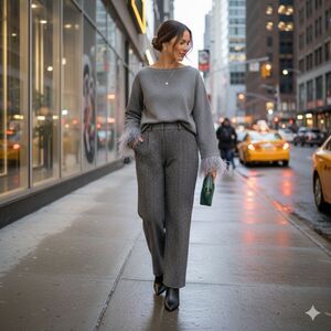 Tags: Boatneck • Statement Sweater • Textured • Embellished • Fuzzy Trim • Holiday • Party • Winter • Cozy • Luxe • Soft Knit • Minimalist Glam • Chic • Dressy Casual • Unique Detail