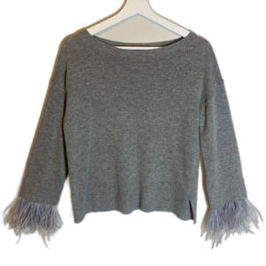 J. Crew Wool Blend Sweater Women's Size S Gray Feather Trimmed Embellished Luxe