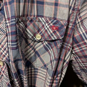 Tommy Hilfiger Plaid Dress Red White Blue Snaps Tie Belt Long Sleeve Sz Lg
