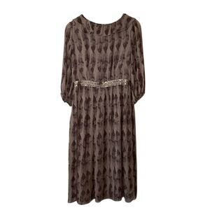 Sundance Women’s 100% Silk Feather Boho Bohemian V-Neck Midi Dress Brown Size 10