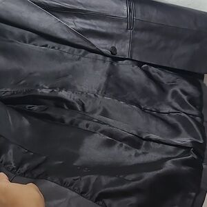 Sleek black blazer by Denim & Co. Perfect for professional and casual settings. Adds sophistication to any outfit. 100% leather ptp 21, sleeve 24, lenght 31