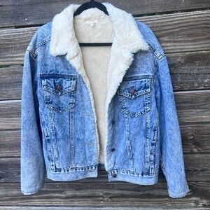 A.Peach Oversized Retro Denim Jacket Extremely Soft Faux Fur Lining