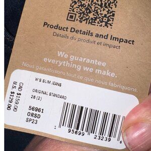 Crafted from organic cotton, these slim-fit jeans combine comfort and sustainability. Featuring a dark wash, they suit various casual settings seamlessly. Retail $129