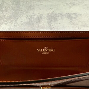 Chic Valentino Garavani crossbody bag in rich brown. Features a stylish design with a gold chain strap.