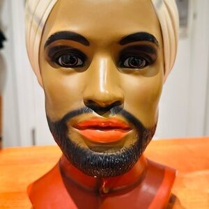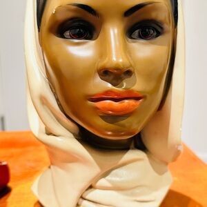Marwal Chalkware Middle Eastern man and woman head bust. Beautiful couple. Lady, approx. 10" tall X 6”wide. Good condition. Few small chips that can be easily touched up. The man is 11 inches tall and approx. 7" wide, wearing a turban. The man has a few scratches and a few chips but nothing that can not be touched up. Great for any table or a chimney mantle.